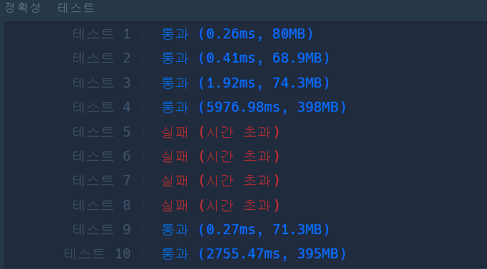 - 이유는 재귀함수를 계속 반복하면서 시간을 초과하게 되는 것