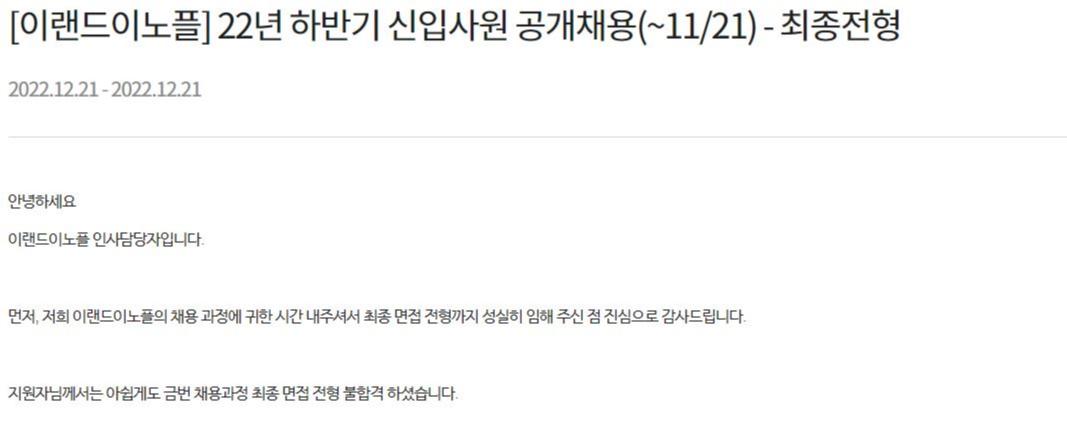 이랜드 이노플의 채용 전과정을 체험해보고, 탈락의 고배를 마신 멋진 나~!