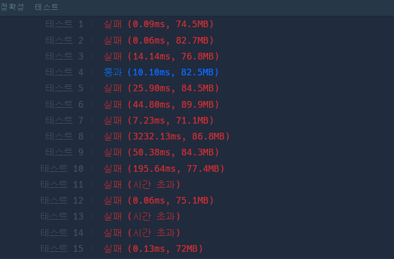 1. 첫번째 시도 -> 실패..테스트 케이스까지만 정답