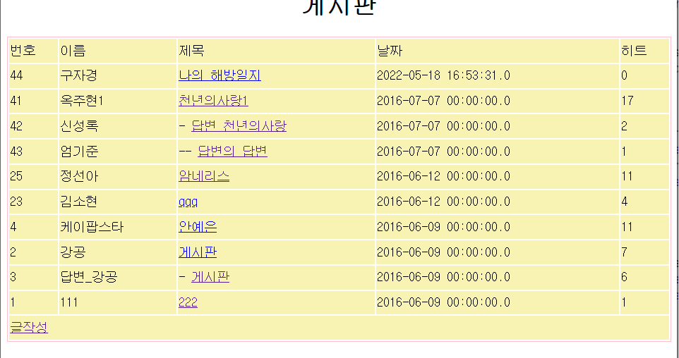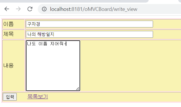 - submit 선택시 form action="write" method="post" 실행