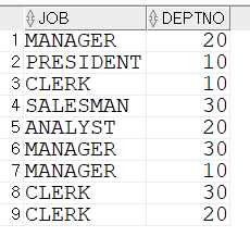 SELECT job, deptno