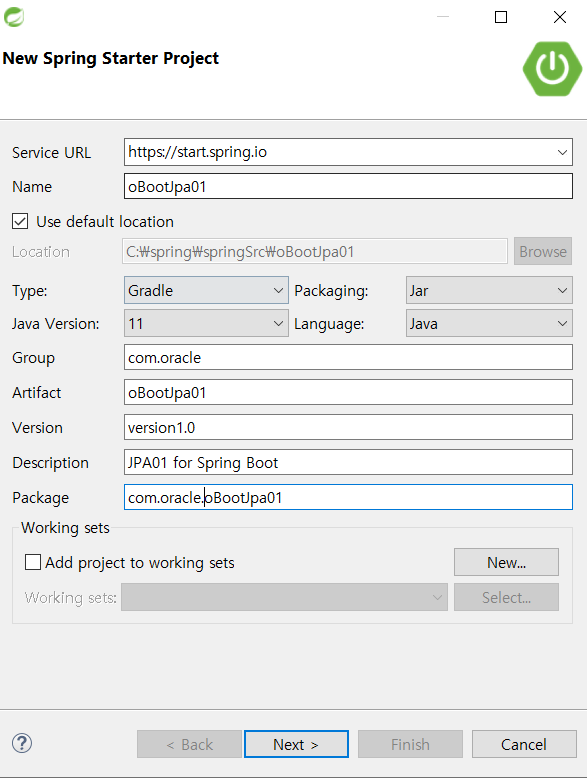 2) 의존성 추가 (Spring Data JPA, OracleDriver, Thymeleaf, Spring web)