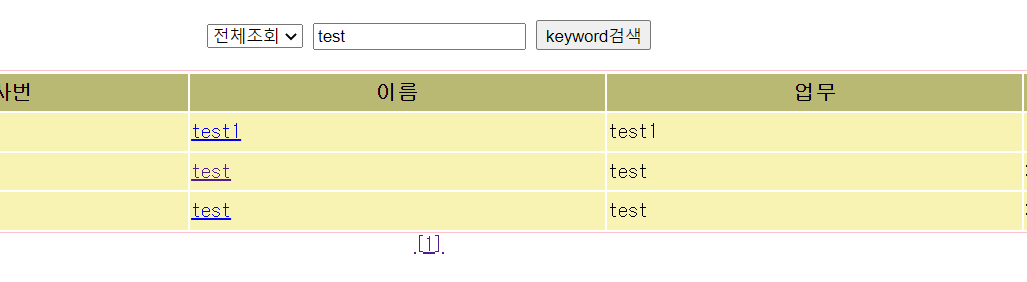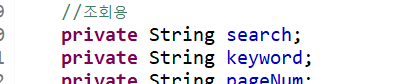 * 검색조건 넣기 위해 Emp model에 search/keyword 넣어둠(테이블에 넣는 것 x. 조회에만 사용)