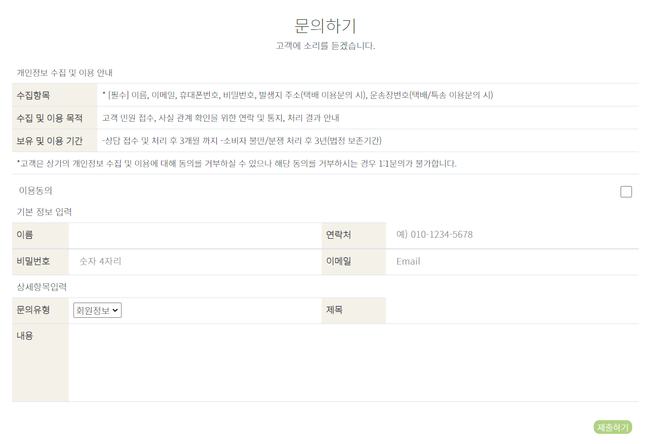 1. 정보 미 입력시 제출하기 불가